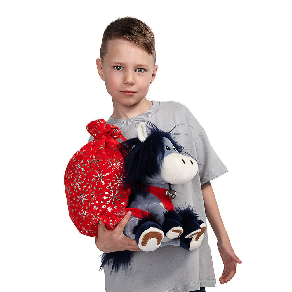 Оригинальная новогодняя текстильная упаковка для сладостей вместимостью до 2400 г. Символ наступающего 2026 года лошадка Мартин.